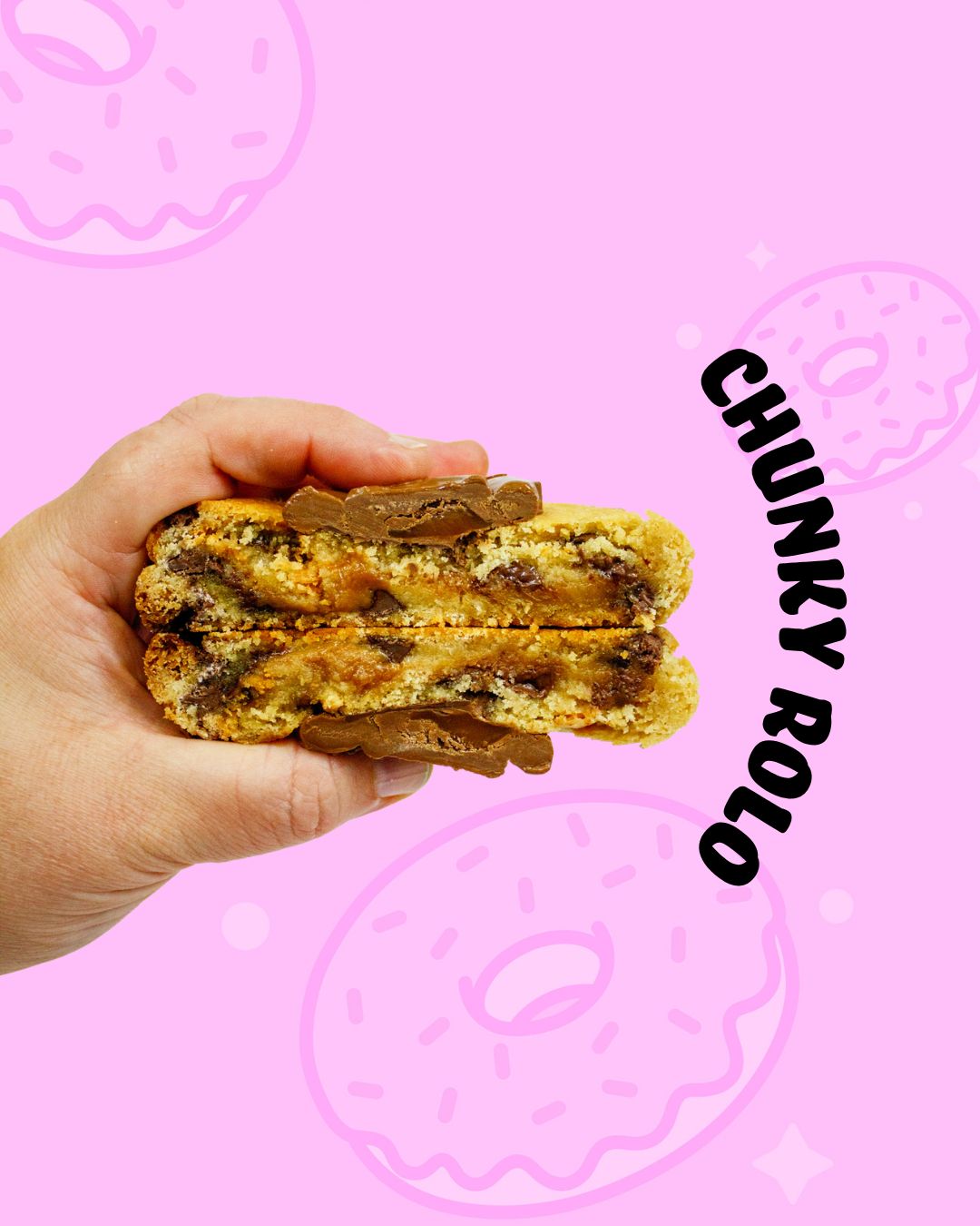 A crushed Oreo & Chocolate chip loaded vanilla cookie with a whole Oreo hidden in the center