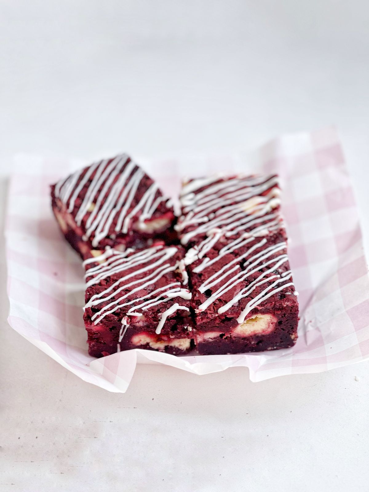 Indulge in the rich, decadent flavour of Red Velvet Cheesecake Brownies by Simply in Season. Each box contains 4 handcrafted brownies, measuring 5cm x 5cm, combining moist red velvet cake with creamy cheesecake swirls for the perfect bite-sized treat. Ideal for gifting, dessert tables, or a sweet indulgence, these brownies are a deliciously luxurious treat for any occasion.